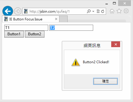 如上圖所示,焦點停在T2<input>,按下Enter卻觸發Button2 Clicked!