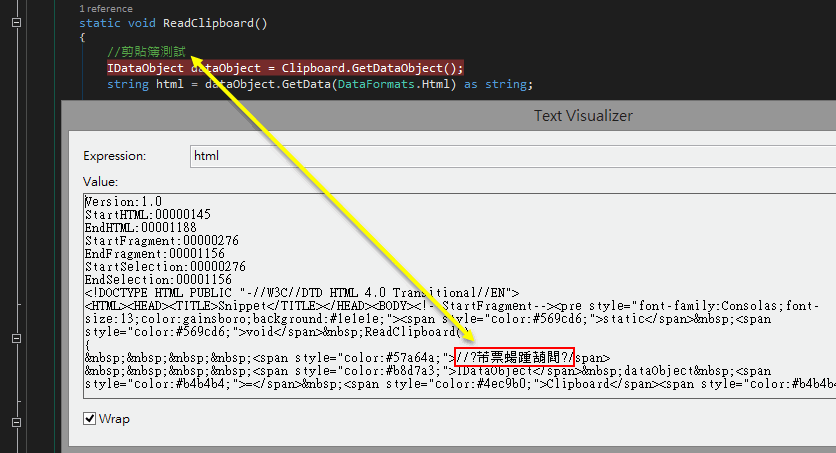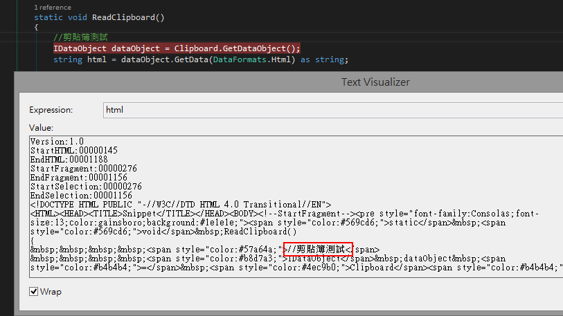 上週分享的Visual Studio程式碼剪貼修正小工具,依照自己不成文的慣例,我又選了.NET 4.0。而在處理剪貼簿讀取時,發現取出的HTML內容,中文變成亂碼…