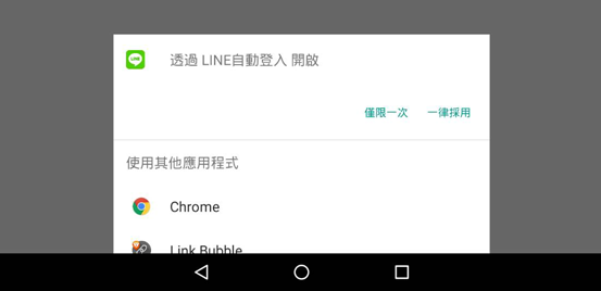 - 瀏覽器導向 LINE 登入網頁時,在手機平板可以選擇導向「LINE 自動登入」程式或導向登入網頁(如下圖所示)。